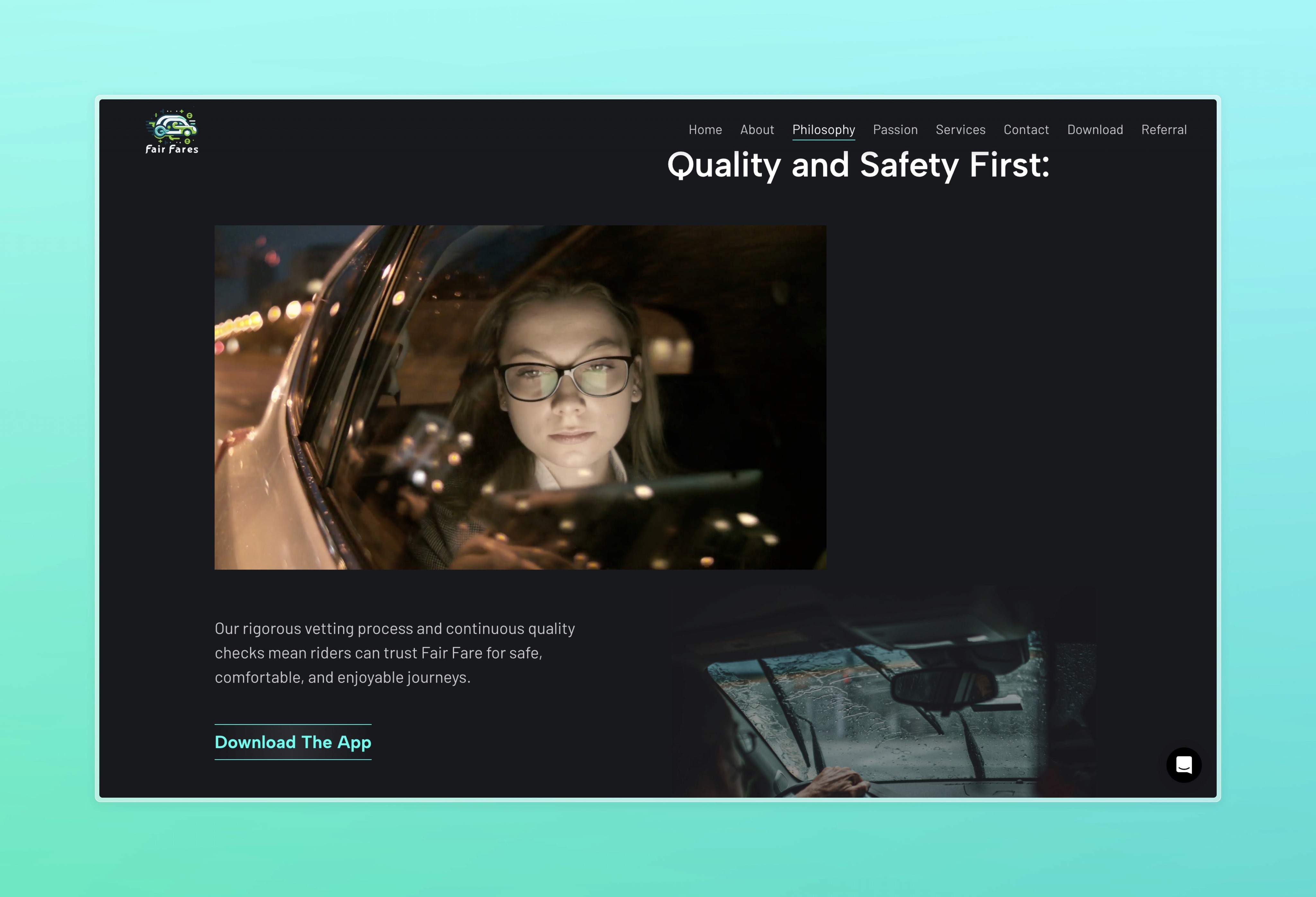 As the website designer, my objective was to create a platform for Fair Fares RideShare that champions their mission of equitable treatment for drivers and high-quality service for riders. The design emphasizes transparency, community benefit, and user engagement, ensuring the site communicates the company's dedication to fairness and excellence in every interaction.